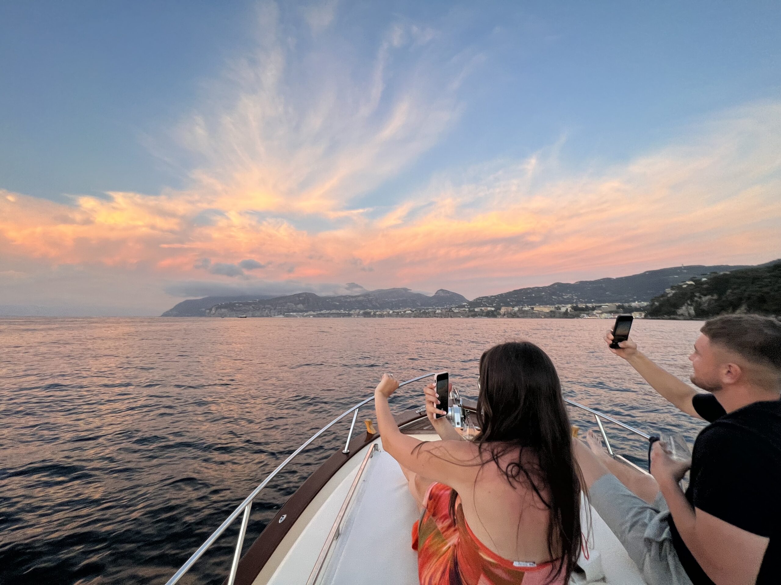 Then we will pass through Punta Campanella where you will admire the most important ancient defense Saracen Tower that also divide the Sorrento Coast while chasing the sun and drinking a cold glass of Prosecco.